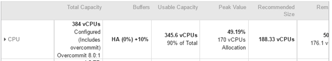 The other part of the buffers is the β+10%β. This is an additional capacity buffer controlled by vROps policy and by default it was set at 10%. We do have the ability to adjust that buffer if needed.
